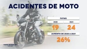 Os atendimentos causados por acidente de moto saltaram de 2.385 para 3.113 nos três HPS, no comparativo entre os períodos de janeiro a abril de 2020 e 2021.