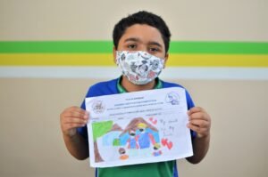 “Eu amo desenhar e fiquei muito feliz de ganhar esse prêmio. A minha inspiração foi a minha família e a minha professora, que desenhei como uma super-heroína, pois ela nos ajuda a aprender várias coisas. Além disso, inseri todas as pessoas que estão na escola, como a merendeira e os alunos que ainda vou conhecer, e a minha mãe, que também me explicou como era a atividade”, disse Lara Sofia, vencedora e representante das turmas do 2º ano do Ensino Fundamental, que recebeu quase 7 mil votos.