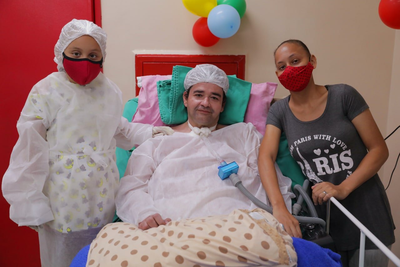“É um dia muito especial para nós. Sempre dizia para ela que logo iria ver o pai. Tem noites que ela chora porque sente falta do pai. É muito emocionante, porque desde quando ele foi internado ela nunca mais tinha visto o pai, somente por chamada de vídeo. É uma grande honra reunir minha família. Muito obrigada por isso”, disse emocionada a esposa do paciente.