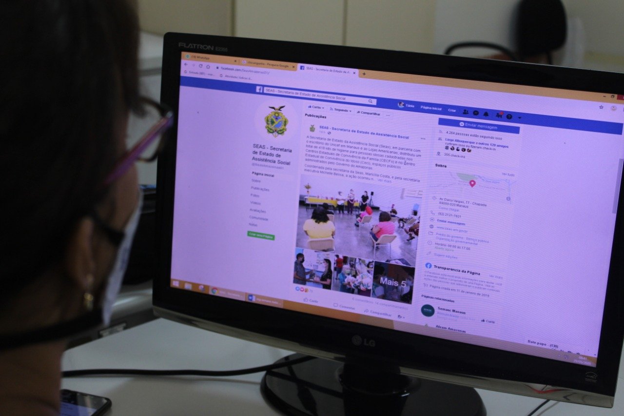 Uma das ferramentas utilizadas atualmente para atingir o público dos sete Centros Estaduais de Convivência, mantidos pelo Governo do Amazonas, por meio da Seas, e em parceria de outras secretarias estaduais, é o Facebook. Todos os centros estão realizando suas atividades on-line, daí o fato de as ações estarem sendo feitas por meio de vídeos, lives e conversas pelo Whatsapp, com cada dirigente procurando inovar, visando manter o serviço governamental ativo.