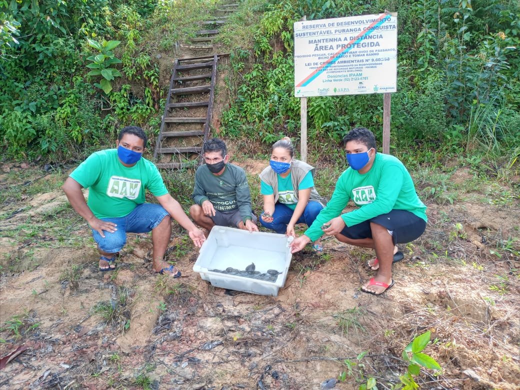 Moradores de três comunidades da Reserva de Desenvolvimento (RDS) Puranga Conquista – Unidade de Conservação (UC) gerida pela Secretaria de Estado Meio Ambiente (Sema) – realizaram, neste fim de semana, a soltura de 398 filhotes de quelônios. Por conta da pandemia, os monitores contaram com a supervisão a distância de técnicos da Sema nos processos de coleta dos ovos até a devolução dos animais à natureza.