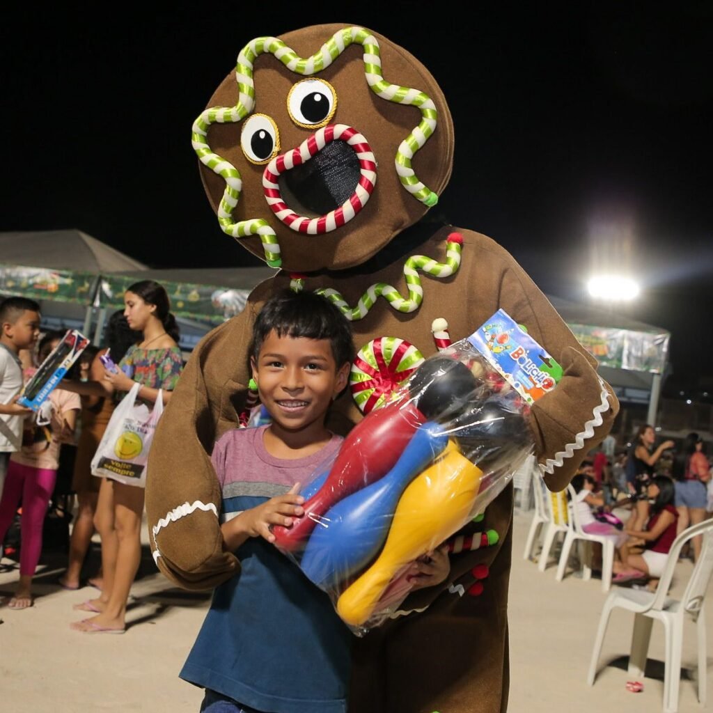 A caravana do “Natal Itinerante” levou, nesta quinta-feira (08/12), brinquedos e apresentações artísticas para as crianças do bairro Ouro Verde, na zona leste de Manaus. A programação integra a campanha “O Mundo Encantado do Natal”, promovida pela Secretaria de Estado de Cultura e Economia Criativa em parceria com o Fundo de Promoção Social e Erradicação da Pobreza (FPS).