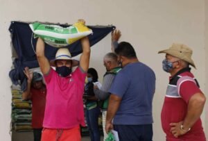 Pequenos produtores da região receberam sacos de farelo de soja e sal mineral numa ação executada pelo Sistema Sepror