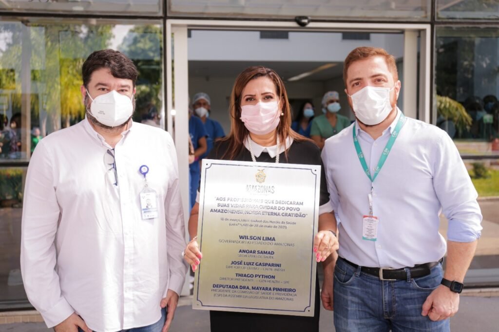 A data foi comemorada pela primeira vez este ano e instituída para homenagear todos os profissionais de saúde, que atuaram durante a pandemia da Covid-19 no estado do Amazonas. Ao final da apresentação, os diretores do hospital receberam uma placa em homenagem aos profissionais.