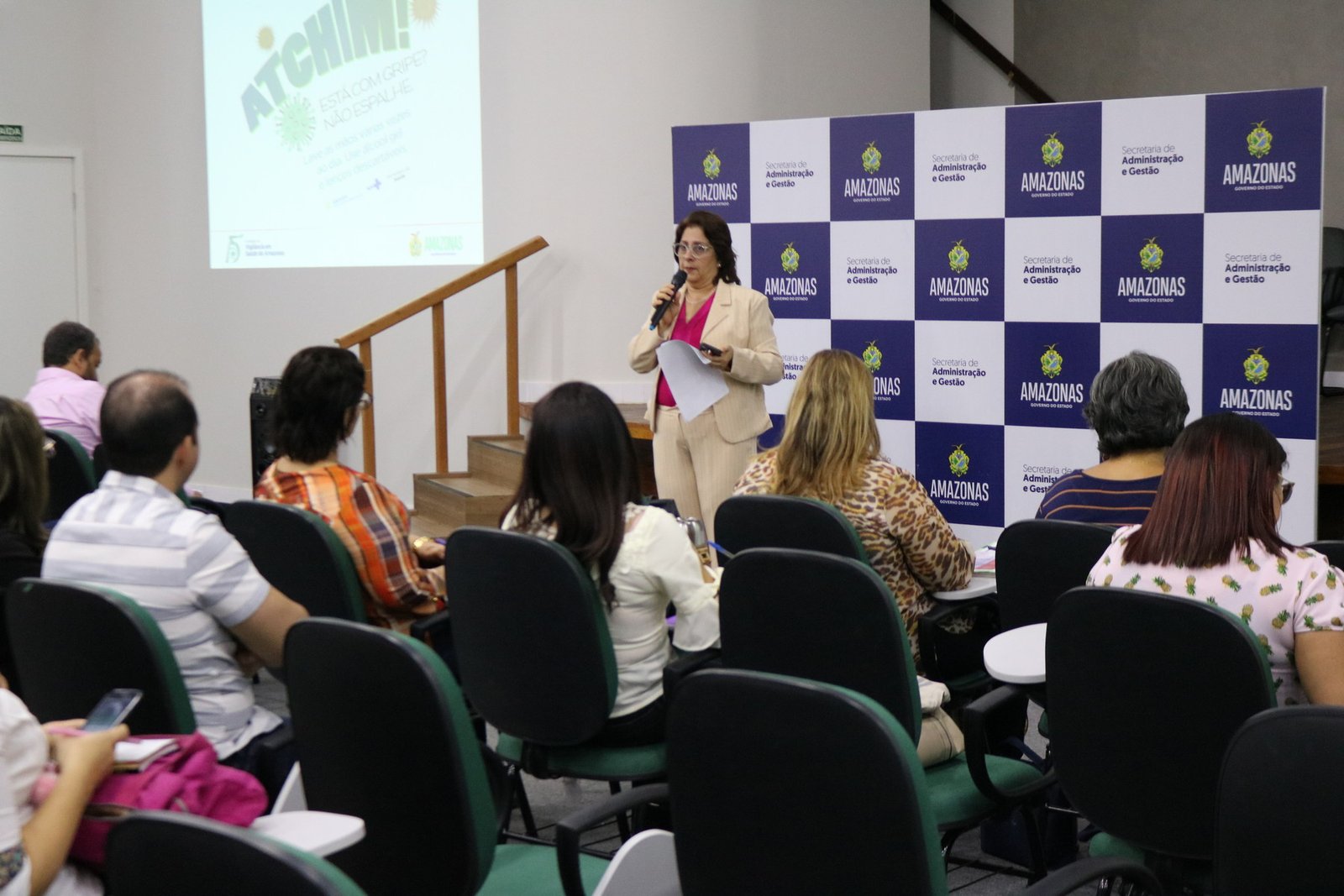 Presente na oficina, a chefe de Departamento de Ações de Saúde da Capital da Secretaria de Estado da Saúde (Susam), Nayara Maksoud, informou que a secretaria elaborou nota técnica em conjunto com a vigilância para preparar a rede com unidades de referências para internação de SRAG na capital.