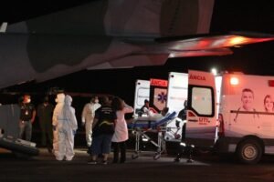 Os dois aviões pousaram por volta de 3h, na base da Força Aérea Brasileira (FAB), o Aeroporto de Ponta Pelada, na zona sul de Manaus. Para a operação foram destacadas 21 ambulâncias, sendo três destinadas a possíveis emergências, como explica a Secretária Adjunta de Políticas de Saúde da SES, Nayara Maksud.