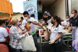 Em continuidade às ações do Governo do Amazonas voltadas para pessoas em situação de vulnerabilidade social, aconteceu, na manhã deste sábado (23/10), a 7ª edição do programa Peixe no Prato Solidário. A ação atendeu mais de 1,1 mil famílias do bairro Mutirão, zona norte da cidade, com a doação de 4 toneladas de tambaqui roelo e 1,2 tonelada de farinha.