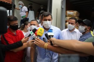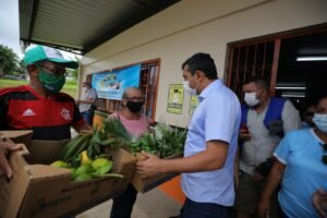 O governador Wilson Lima participou da quarta edição do Programa Peixe no Prato Solidário realizada, neste sábado (18/09), em Rio Preto da Eva (a 57 quilômetros de Manaus). Ao todo, mais de três toneladas de tambaqui roelo adquiridas pelo Estado de piscicultores locais foram doadas, beneficiando cerca de mil famílias. Além do peixe, também foi distribuída uma tonelada de farinha.