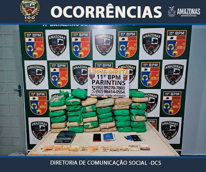 A Polícia Militar do Amazonas (PMAM) apreendeu 38 tabletes de entorpecentes durante uma ação realizada no domingo (22), no município de Parintins, a 369 quilômetros de Manaus. A operação foi conduzida por equipes do 11º Batalhão da PM.