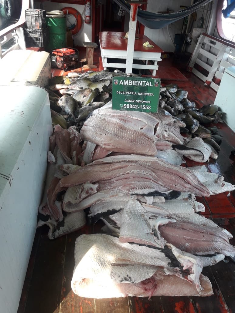 Na manhã de hoje, os policiais do Batalhão Ambiental, durante uma fiscalização, identificaram duas embarcações com pesca e caça ilegal. Os responsáveis pelos barcos levavam pirarucu, tambaqui, pacu e tatu. A quantidade estimada foi de 510 quilos de pirarucu e 849 quilos de tambaqui, totalizando 1.359 toneladas. Os homens foram autuados em flagrante e foram levados para o 19º Distrito Integrado de Polícia.