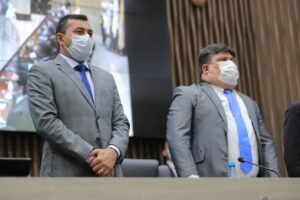 O governador Wilson Lima compareceu à solenidade da retomada dos trabalhos do parlamento municipal. Em seu discurso, o prefeito destacou que tem acompanhado, juntamente com o governador, a execução de obras de recapeamento e falou do trabalho nas feiras.