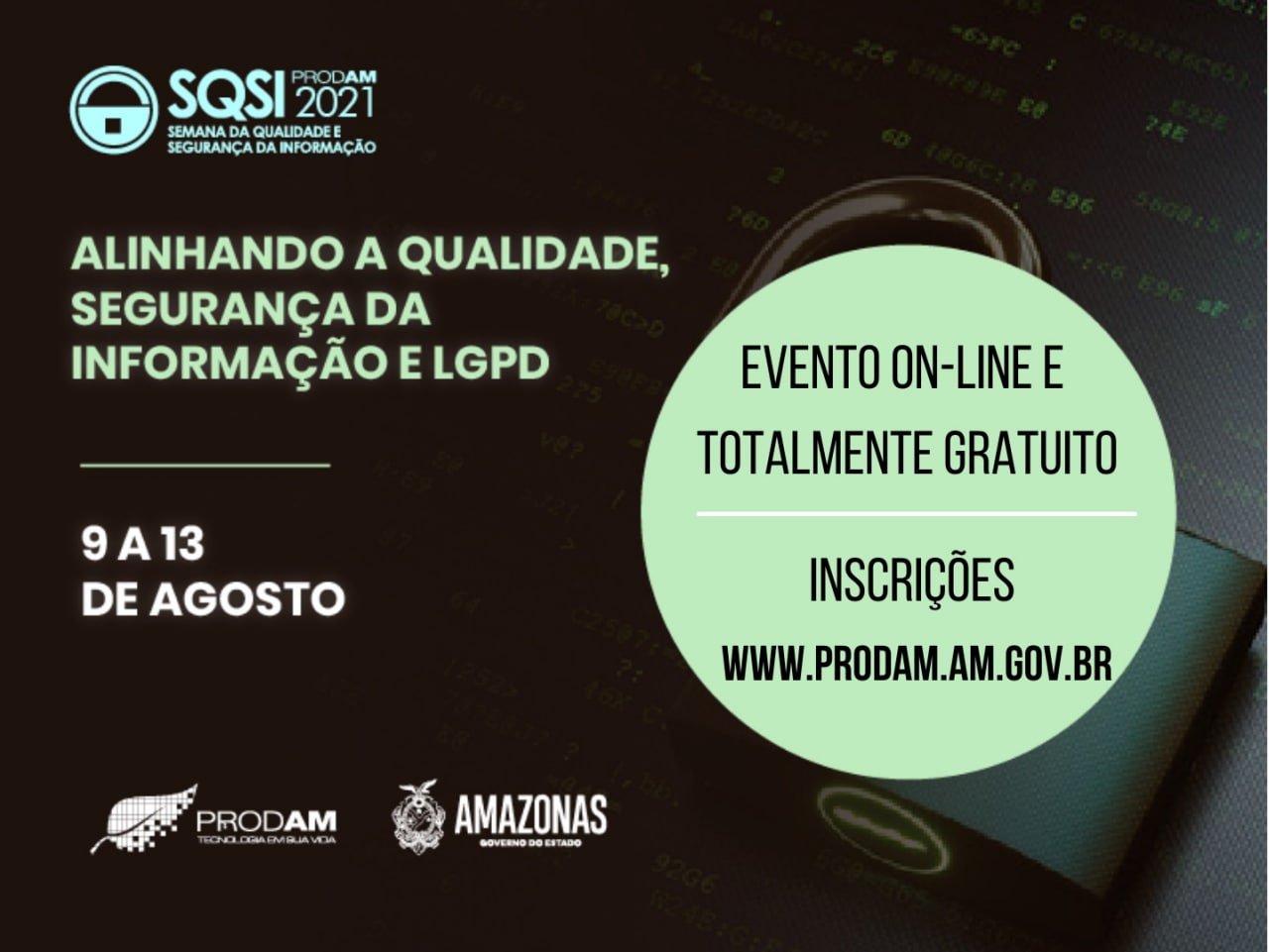 A Processamento de Dados Amazonas S.A (Prodam), órgão de tecnologia do Governo do Amazonas, promove, no período de 9 a 13 de agosto, a 12ª edição da Semana da Qualidade e Segurança da Informação (SQSI). Neste ano, a programação do evento conta com palestras sobre cibersegurança, Lei Geral de Proteção de Dados (LGPD) e Gestão da Qualidade.