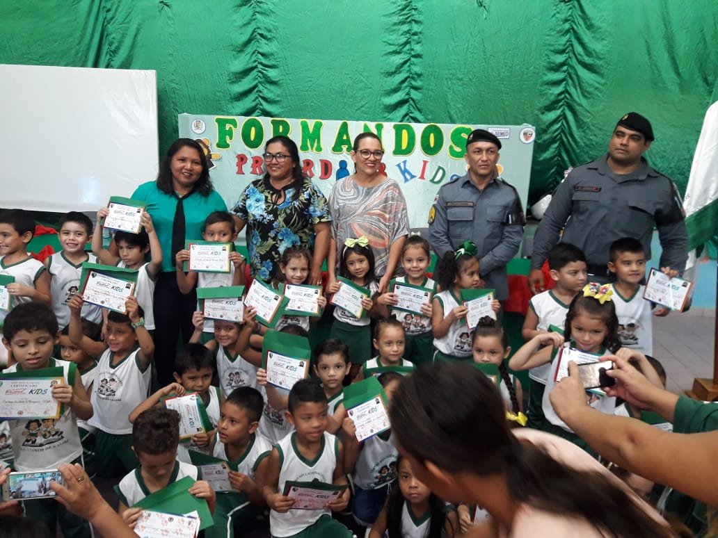 Nesta segunda-feira (17/06), policiais militares do 11° Batalhão que atuam como instrutores do Programa Educacional Proteção e Resistência às Drogas e à Violência (Proerd) Kids realizaram duas formaturas de entrega dos Certificados de Participação nos Centros de Educação Infantil Novo Israel e Pequeninos de Nazaré, localizados em Parintins, distante 369 quilômetros de Manaus.