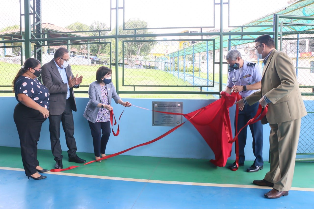 Parceria – A cônsul-geral do Japão em Manaus, Hitomi Sekiguchi, reafirmou que o consulado apoia as iniciativas em prol das melhorias nas escolas. Ela, que está voltando para o Japão, prestou solidariedade às famílias que perderam pessoas nesta pandemia e lamentou não poder reinaugurar a quadra com a presença dos estudantes.