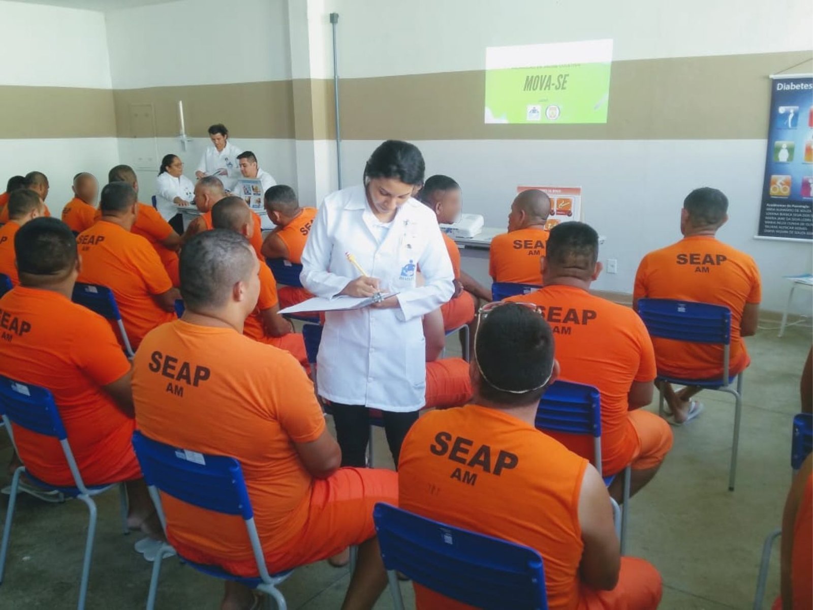 Com a participação de médicos, enfermeiros e nutricionistas, foram realizadas palestras sobre hipertensão arterial, diabetes e obesidade, com conscientização sobre mudanças em estilo de vida, autocuidado e orientação para alimentação saudável. A ação atendeu 40 internos.
