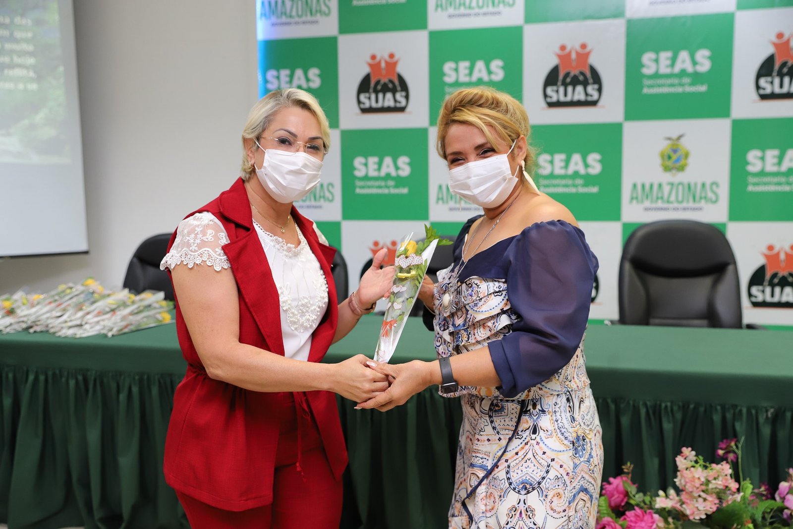 As secretárias Maricília Costa, Michelle Bessa e Andréa Cidade, respectivamente titular, executiva e adjunta da Seas, parabenizaram os psicólogos da pasta, destacando o papel fundamental que eles exercem na demanda da rede de assistência social. As gestoras lembraram o importante papel que esses profissionais, juntamente com as assistentes sociais, exerceram no período mais difícil da pandemia do coronavírus, junto aos moradores em situação de rua.
