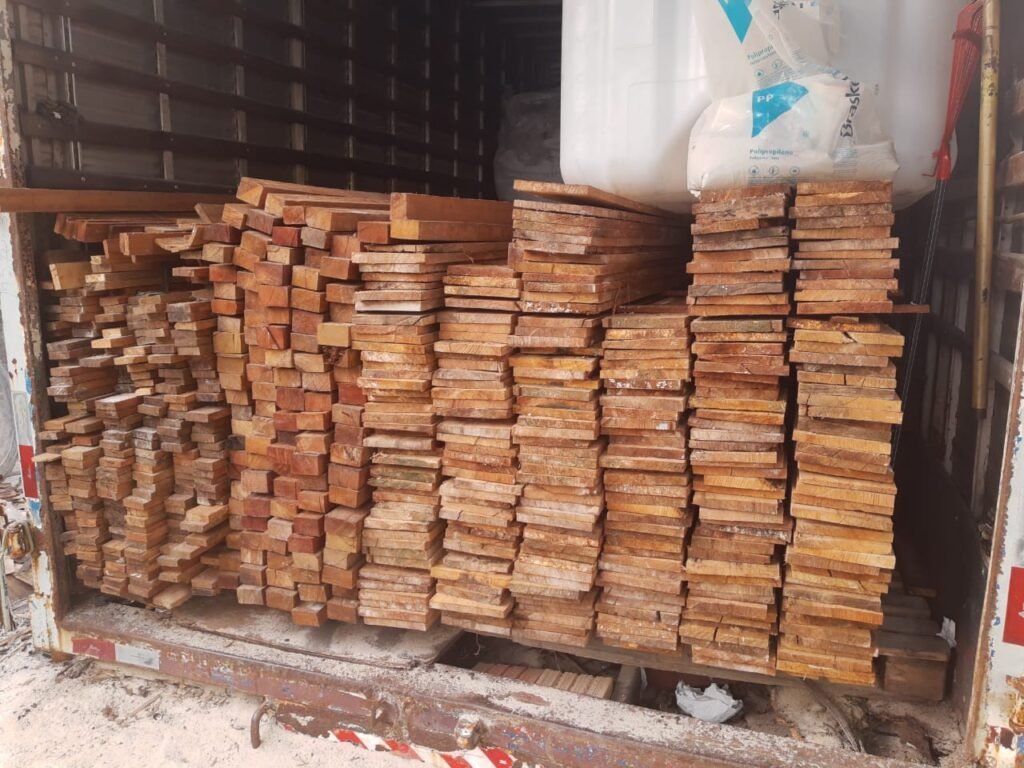 Policiais militares do CPAmb/BPAmb encontram madeira sem documentação em loja de material de construção, no Zumbi 6 de outubro de 2020