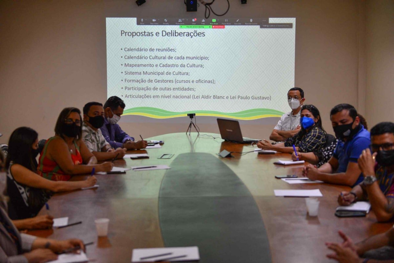 Na tarde de terça-feira (08/06), foi realizado encontro para instituição do Fórum Estadual dos Secretários e Coordenadores de Cultura, que vai reunir gestores dos municípios do Amazonas com o objetivo de articular, debater e municipalizar políticas públicas culturais voltadas ao estado do Amazonas. A reunião foi realizada de forma híbrida, presencial e on-line.