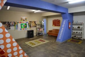A Biblioteca Braille dispõe de um acervo de mais de 50 mil obras entre livros digitalizados, livros falados, obras em Braille e filmes com audiodescrição. O espaço também disponibiliza estúdios de gravação, máquinas de escrever em Braille, computadores especiais, impressoras em Braille, scanners de voz e lupas eletrônicas.
