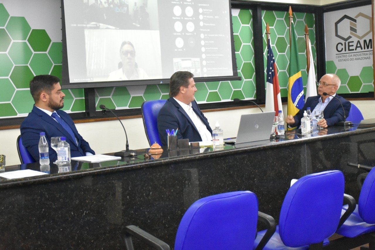O Governo do Amazonas, por meio da Secretaria de Estado de Desenvolvimento Econômico, Ciência, Tecnologia e Inovação (Sedecti) e da Universidade do Estado do Amazonas (UEA), participou da 283ª Reunião Ordinária de Diretoria do Centro da Indústria do Estado do Amazonas (Cieam), na quarta-feira (27/04). Na ocasião, o novo titular da Sedecti, Angelus Figueira, foi apresentado oficialmente à entidade empresarial, bem como o novo reitor da UEA, André Zogahib. Em pauta, o relacionamento de ambas as instituições com a indústria.