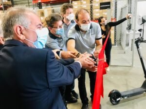 Nesta terça-feira (14/09), o titular da Secretaria de Estado de Desenvolvimento, Ciência, Tecnologia e Inovação (Sedecti), Jório Veiga, participou da inauguração da fábrica de patinete elétrico, Davinci Micromobilidade. Com os patinetes, a empresa busca oferecer um veículo leve e prático para pequenas distâncias.