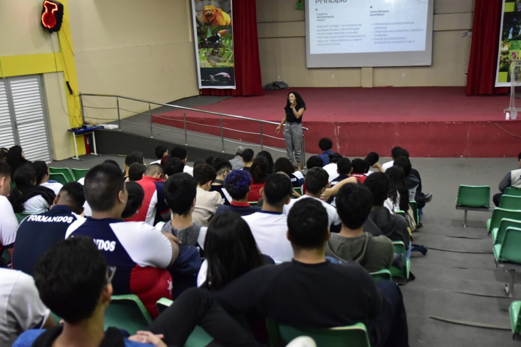 Camila Reis, assessora da GPID, comentou que a palestra trabalha os interesses dos jovens, como arte, cultura e jogos, ligando-os ao tema principal, que é a discriminação.