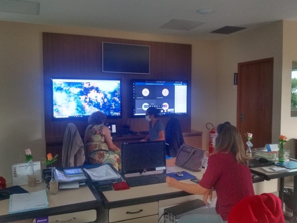 Durante a reunião, técnicos da Sema apresentaram um panorama do desmatamento e queimadas no estado, realizado a partir do monitoramento diário dos dados do Inpe, por meio da Sala de Situação da Secretaria.