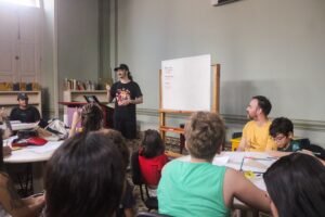 Logo no primeiro dia, a Biblioteca Pública concentrou uma série de oficinas voltadas à formação no universo dos quadrinhos. A programação começou com a oficina “Roteiro para Quadrinhos”, ministrada por Helena Cunha. Em seguida, o cartunista Monge Han conduziu a atividade de criação de personagens, reunindo participantes interessados em desenvolver técnicas e explorar a criatividade. O encerramento do dia ficou por conta da artista Raquel Teixeira, com oficina de coloração.