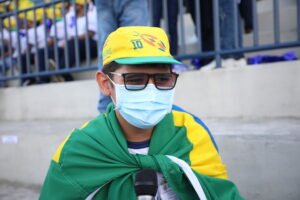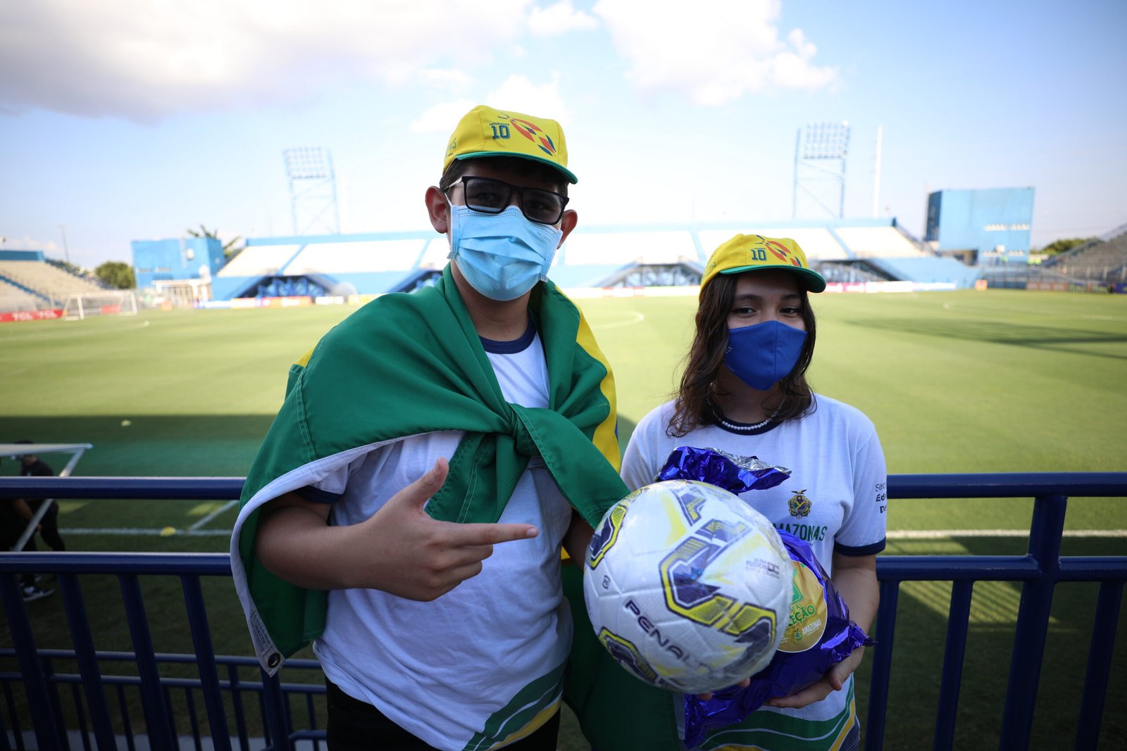 Vestido com a farda da rede estadual de ensino e a bandeira do Brasil nas costas estava o estudante Saullo Paes, que cursa o 9° ano do Ensino Fundamental. Ele é um dos 150 alunos de escolas estaduais do Amazonas que foram selecionados para acompanhar o treino da seleção brasileira, realizado na tarde desta terça-feira (12/10), no estádio Ismael Benigno (Estádio da Colina), situado no bairro São Raimundo, zona oeste de Manaus.