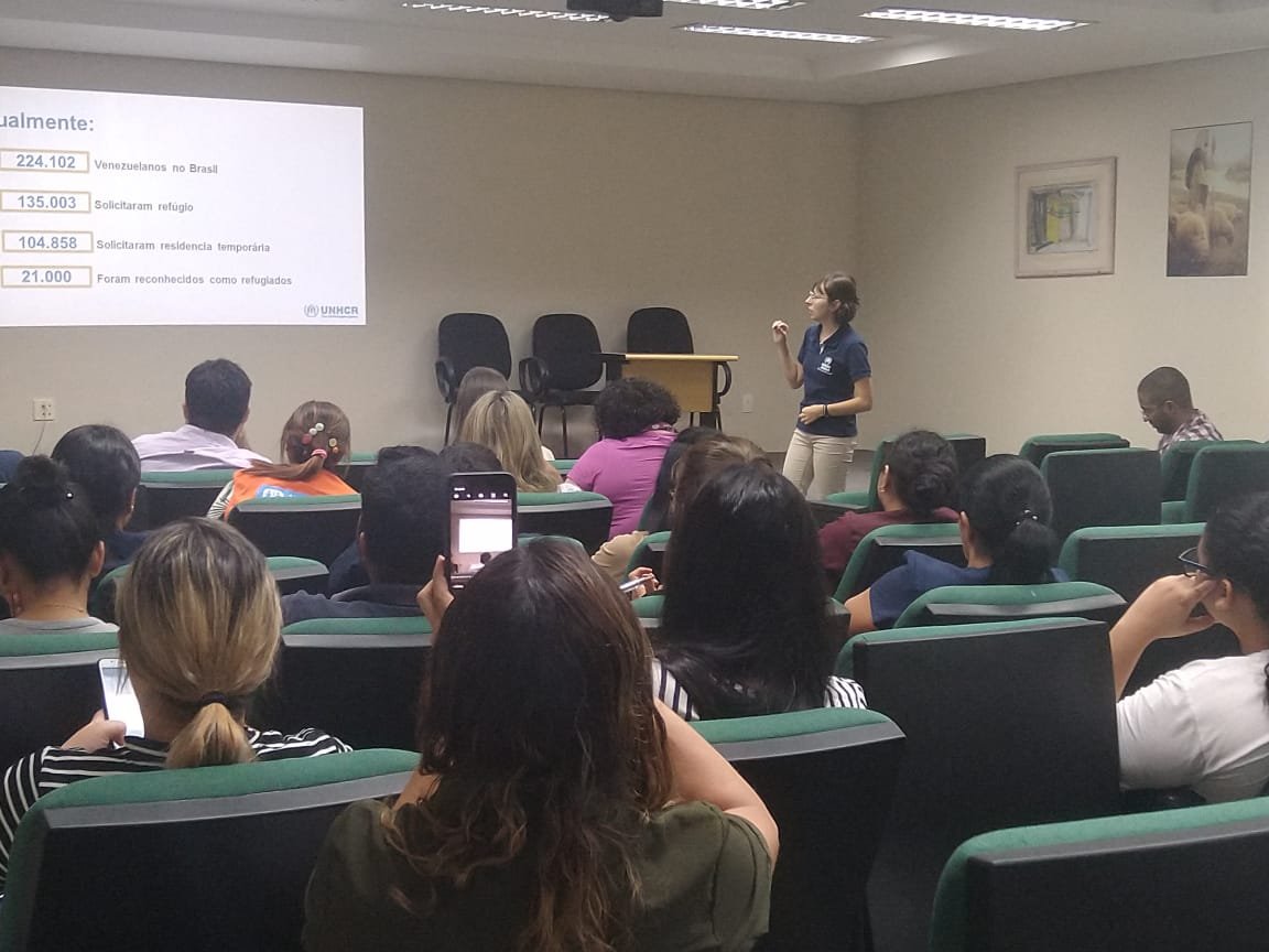 A assistente sênior de proteção da Acnur, Juliana Serra, apresentou para os servidores como funciona a proteção nacional de refugiados e a situação dos venezuelanos no Brasil.