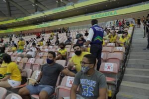 O trabalho de fiscalização consiste em orientar os torcedores sobre a necessidade de cumprimento das medidas de prevenção à Covid-19 como: respeito ao distanciamento social, uso de máscara, e prestar todas as orientações para evitar aglomerações na entrada e saída do local da partida. Desde o acesso nas bilheterias até as cadeiras tem trabalhadores orientando os torcedores.