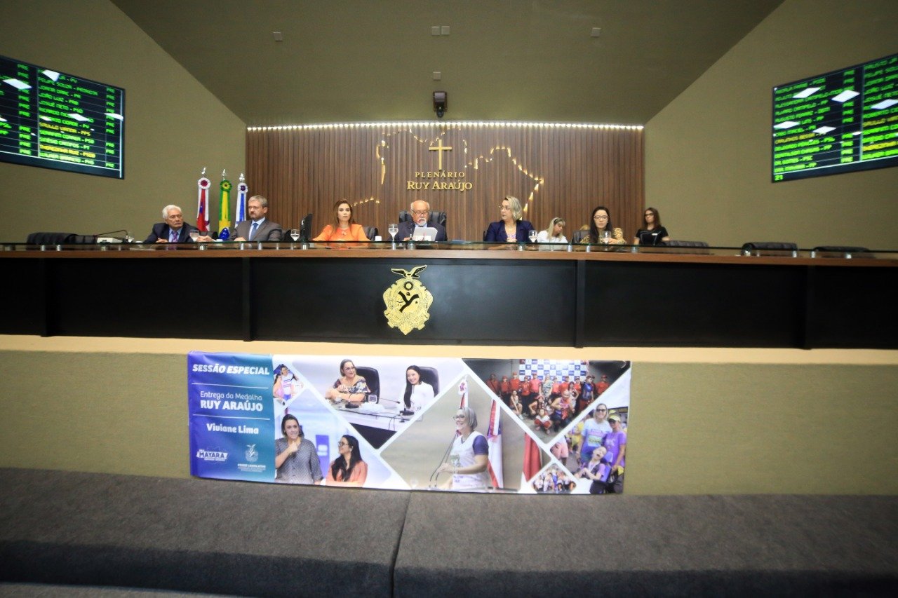 De propositura da deputada Mayara Pinheiro, Viviane Lima recebeu a medalha Ruy Araújo nesta terça (20/8)