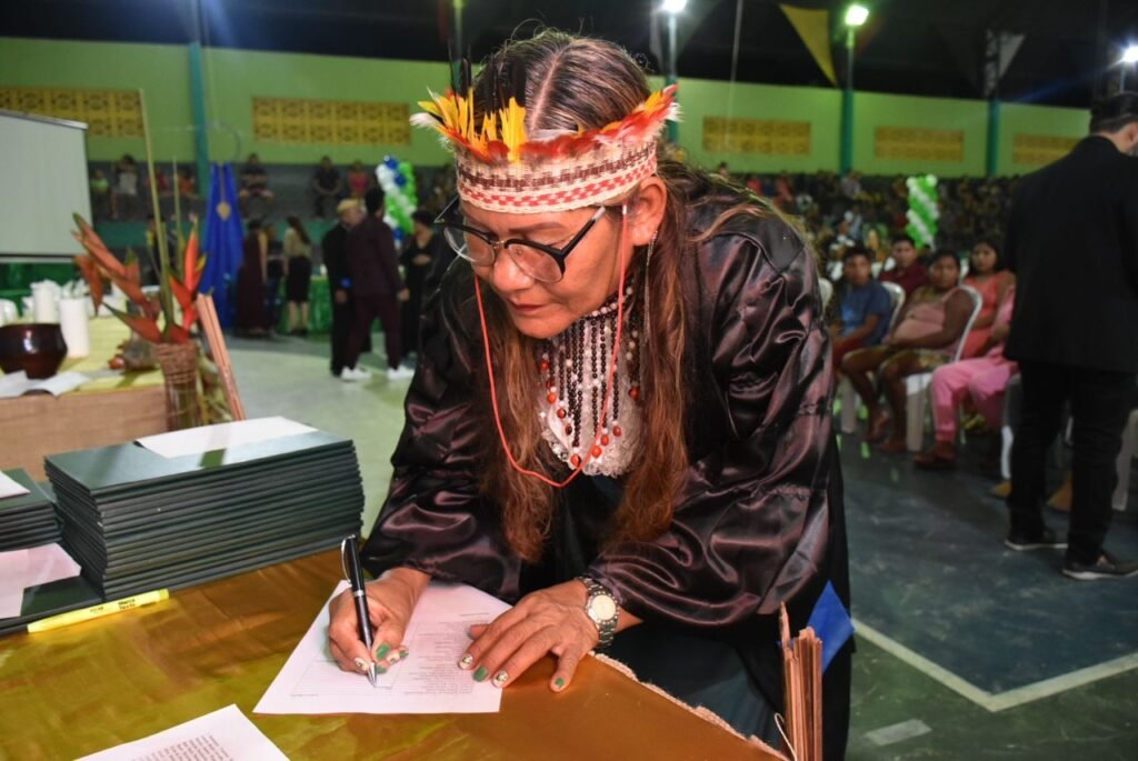 A cerimônia de colação de grau, que reuniu formandos, seus familiares e professores, aconteceu no ginásio Professor Lucival Brotas, e contou também com a presença do prefeito de Atalaia do Norte, Dênis de Paiva; e da coordenadora regional substituta da Fundação Nacional do Índio (Funai), Mislene Mendes; dentre outros representantes da sociedade civil.