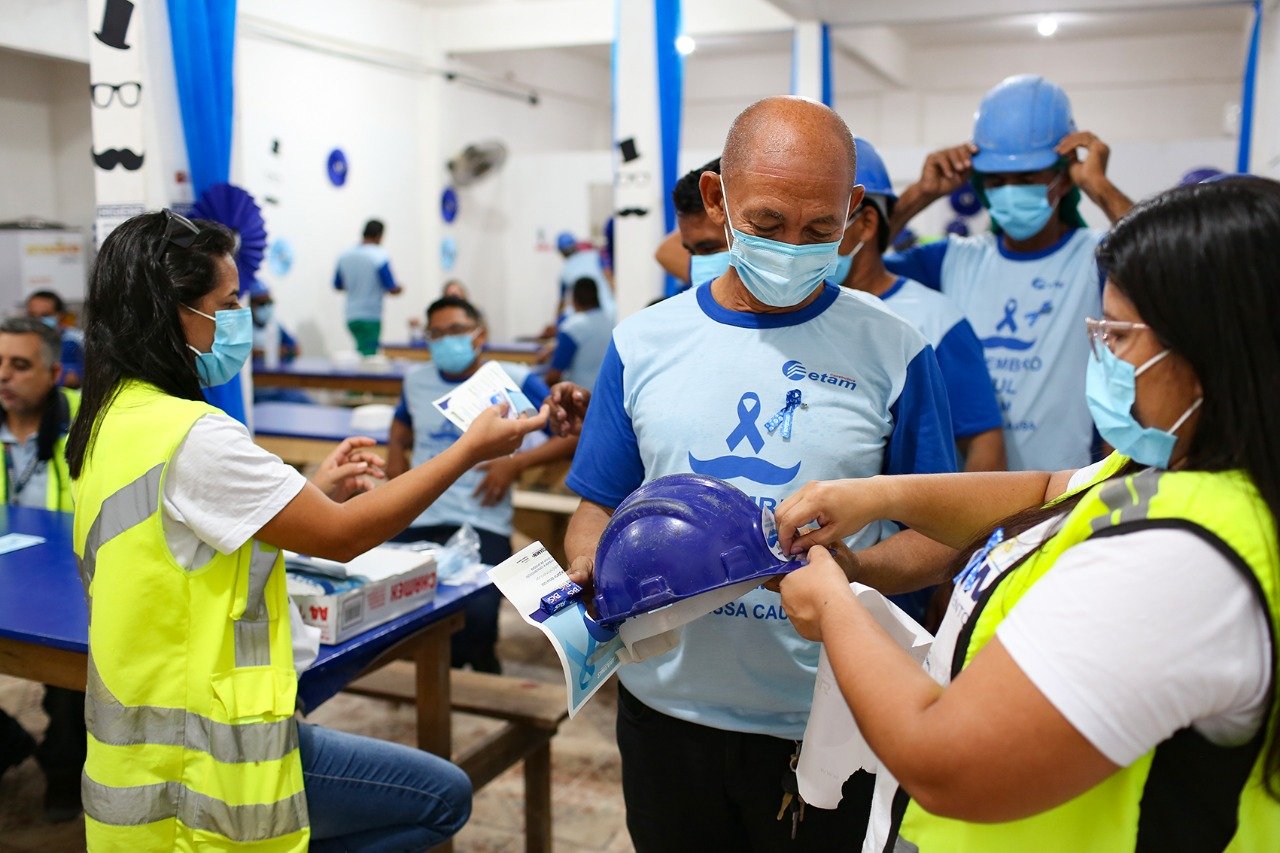 A Unidade Gestora de Projetos Especiais (UGPE) realizou, nesta sexta-feira (19/11), uma ação de sensibilização para a saúde do homem, no canteiro de obras do Programa Social e Ambiental de Manaus e Interior (Prosamin+), no leito do Igarapé do 40, zona sul de Manaus. A ação é em alusão à campanha Novembro Azul, que chama a atenção do público masculino para os cuidados com a saúde.