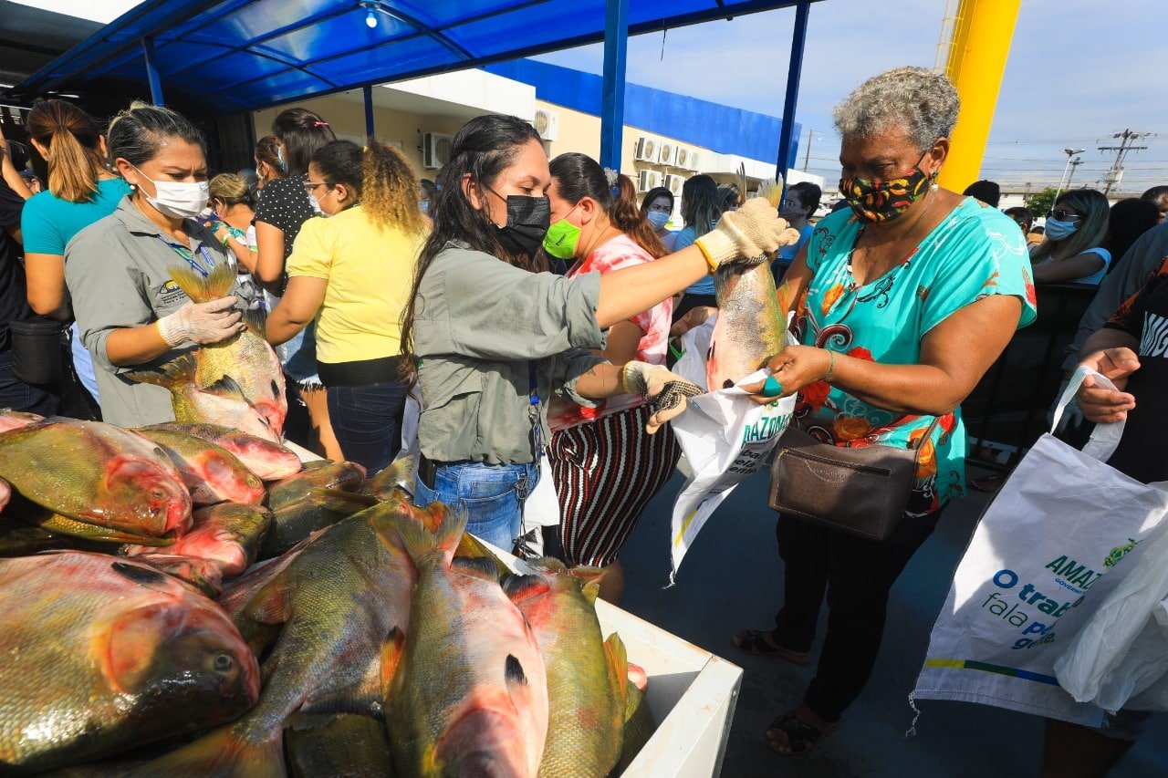 Além do peixe foram entregues 2 mil cestas básicas e 2 mil abacaxis. A distribuição ocorreu na Escola Estadual Eliana Socorro Pacheco Braga, coordenada pelo Sistema Sepror, Secretaria de Estado de Assistência Social (Seas) e Fundo de Promoção Social e Erradicação da Pobreza (FPS).