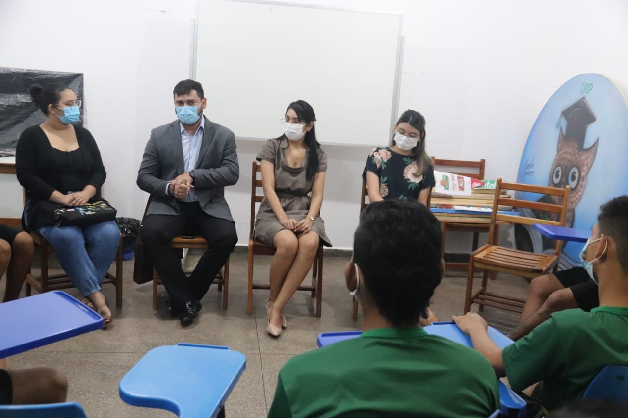A Unidade de Internação Provisória (UIP), na zona centro-oeste de Manaus, coordenada pela Secretaria de Estado de Justiça, Direitos Humanos e Cidadania (Sejusc), recebeu na manhã desta quinta-feira (18/11), uma palestra do programa “Ensina-me a Sonhar”, coordenado pela Defensoria Pública do Amazonas (DPE-AM). O principal objetivo é ressocializar adolescentes que cumprem medidas socioeducativas, por meio de palestras ministradas por diferentes profissionais.