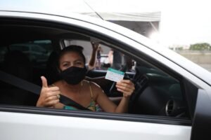 Rosiane Campos, 41, aproveitou a noite deste sábado (28/08) para completar o ciclo vacinal. Ela comemorou receber essa dose de esperança e de proteção contra a Covid-19. “Agora sei que estou mais segura. Meu pai tomou só a primeira dose, pegou a covid e faleceu. Por isso estou aqui para me proteger. Todo mundo tem que se vacinar”, disse após a vacinação no drive-thru do Sambódromo.