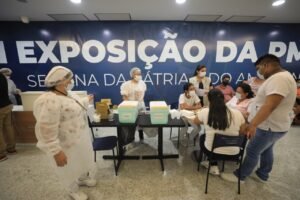 Parceria – Em parceria com os estabelecimentos comerciais, os pontos de vacinação montados receberam o público para aplicação de primeira e segunda dose em pessoas acima de 12 anos, além de dose de reforço para quem tem a partir de 50 anos e trabalhadores de saúde. Para a ação, todos os tipos de imunizantes enviados ao Amazonas serão utilizados pelos profissionais de saúde.