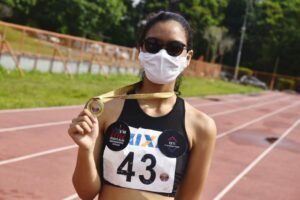 Ouro nos 250m e prata nos 75m rasos femininos, Maria Emanuele, 15 anos, comemora os resultados obtidos através dos treinos realizados na Vila Olímpica. “Quando os treinos na Vila voltaram, eu pude recuperar meu resultado de antes. E eu estou melhorando a cada dia. Então é muito gratificante. Agora eu estou visando o Campeonato Brasileiro e os Jogos Escolares”, afirma a atleta.