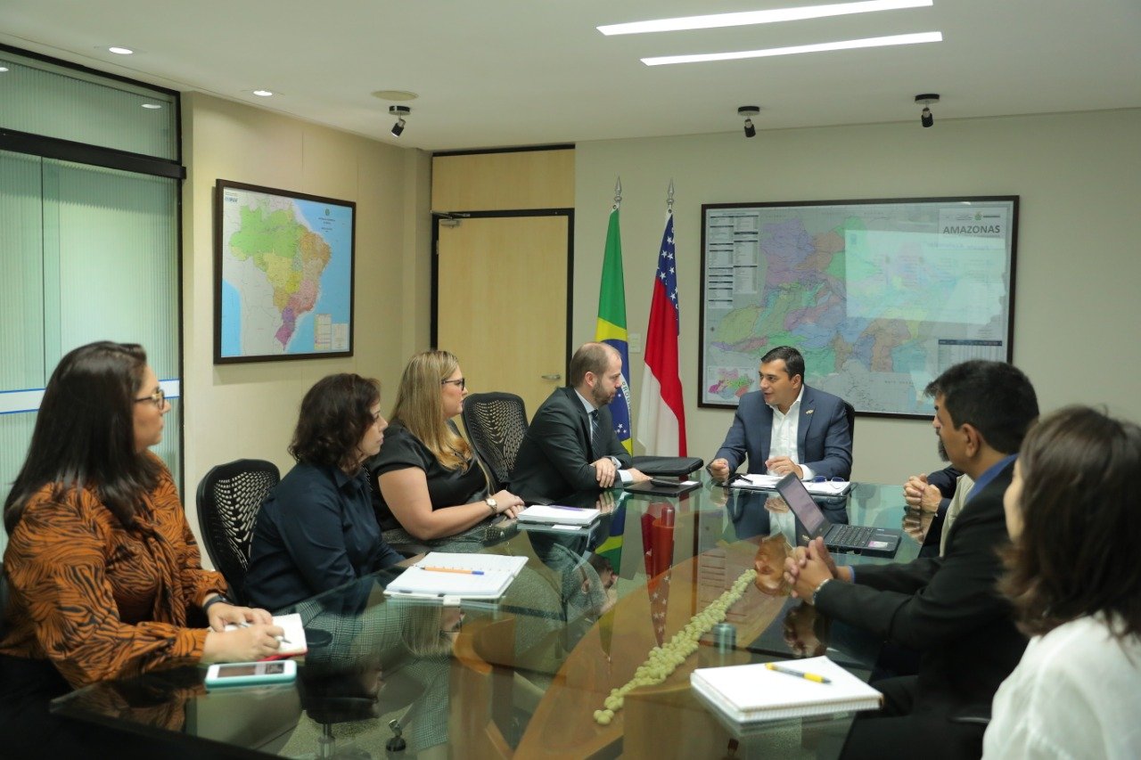 O governador Wilson Lima recebeu, nesta segunda-feira (08/07), representantes do Programa das Nações Unidas para o Desenvolvimento (PNUD), que iniciam tratativas para alinhar o Plano Plurianual 2020-2023, em elaboração pelo Governo do Estado, com a Agenda 2030 e seus 17 Objetivos de Desenvolvimento Sustentável (ODS) definidos pela Organização das Nações Unidas (ONU). No encontro, foi discutido o fortalecimento do setor privado na agenda de desenvolvimento e a criação de uma rede de facilitadores para efetivação de políticas públicas de grande impacto econômico e social para o Amazonas.
