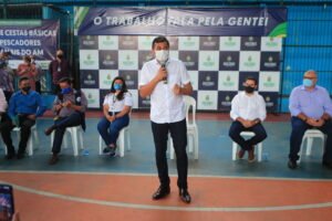 O governador Wilson Lima participou, na tarde desta sexta-feira (23/07), da entrega de 1.626 cestas básicas aos pescadores artesanais de Manaus em situação de vulnerabilidade, devido à cheia histórica dos rios e a pandemia de Covid-19. A ação, que beneficiou pescadores da Colônia Z-12, aconteceu na quadra da Paróquia Nossa Senhora do Perpetuo Socorro, bairro Educandos, zona sul da capital. Anteriormente, já foram entregues mais 18 mil cestas em 16 municípios do interior do estado.
