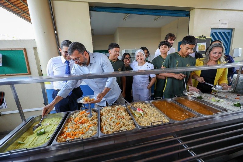 Em visita à Escola Estadual de Tempo Integral Marcantônio Vilaça I, na zona norte, o governador Wilson Lima destacou que ambos os editais beneficiam os alunos da rede estadual e fortalecem o setor primário, principalmente produtores rurais e moveleiros.