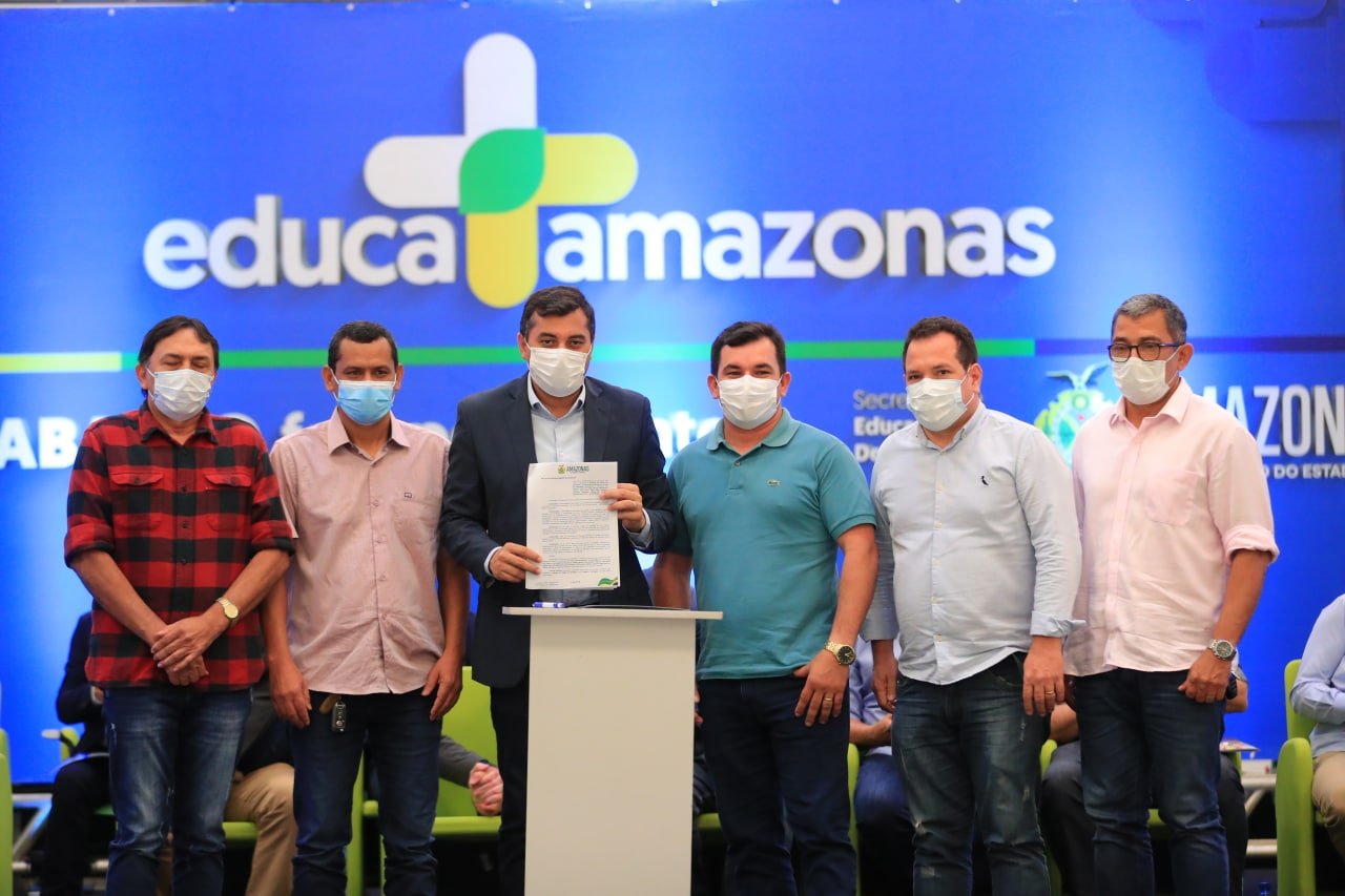 O governador Wilson Lima lançou, nesta sexta-feira (23/07), o programa “Educa+Amazonas”, que reúne 13 projetos prioritários com investimento da ordem de R$ 400 milhões nas redes públicas estadual e municipais de educação. O lançamento, no Centro de Convenções Vasco Vasques, reuniu prefeitos e secretários municipais de educação e marcou a assinatura do Pacto pelo Fortalecimento da Educação no Amazonas.