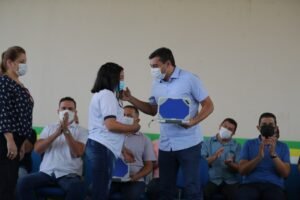 Saúde – Ainda em Rio Preto da Eva, Wilson Lima entregou ao prefeito da cidade um cheque simbólico no valor de R$ 604 mil, equivalente a nova parcela de recursos do Fundo de Fomento ao Turismo, Infraestrutura, Serviços e Interiorização do Desenvolvimento do Amazonas (FTI) que está sendo repassada ao município para área da saúde. Desde 2019, Rio Preto já recebeu R$ 4,2 milhões do FTI para ampliar atendimentos da saúde.