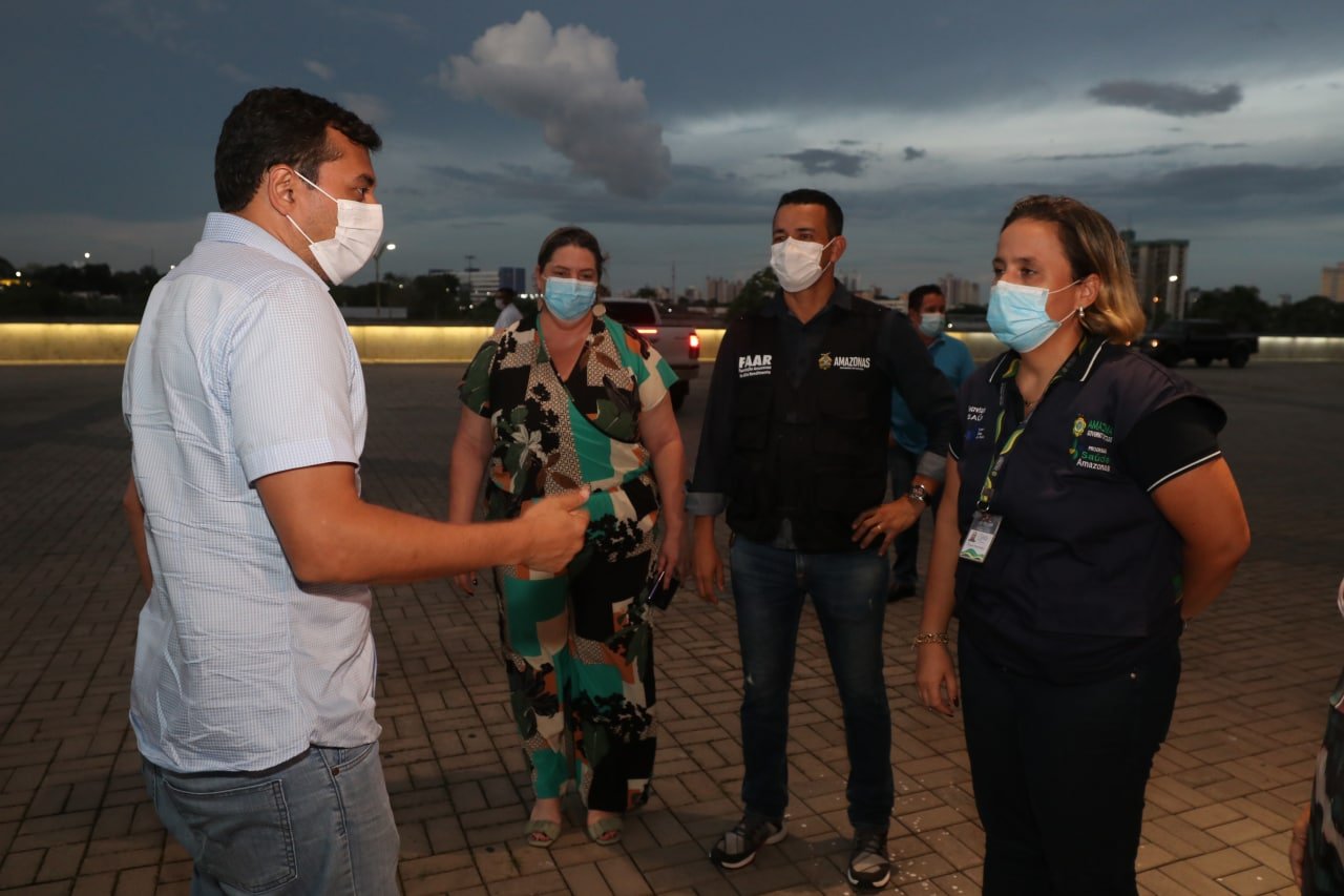 O governador Wilson Lima vistoriou, na noite desta sexta-feira (11/06), os ajustes finais de preparação da Arena da Amazônia, que será um dos três pontos de vacinação, que funcionarão durante 32 horas, neste fim de semana. A meta do Governo do Amazonas e da Prefeitura de Manaus é vacinar toda a população a partir de 40 anos na capital, entre sábado e domingo (12 e 13/06), com a abertura de 57 pontos de imunização.